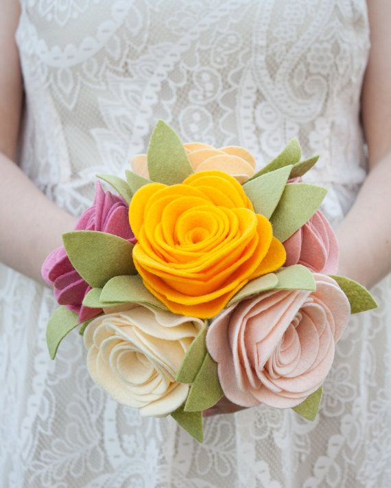 Combine tecidos e cores para montar um buquê que seja a sua cara. A renda Deixa o buquê delicado e feminino, enquanto o feltro é um material super fácil de ser trabalhado.