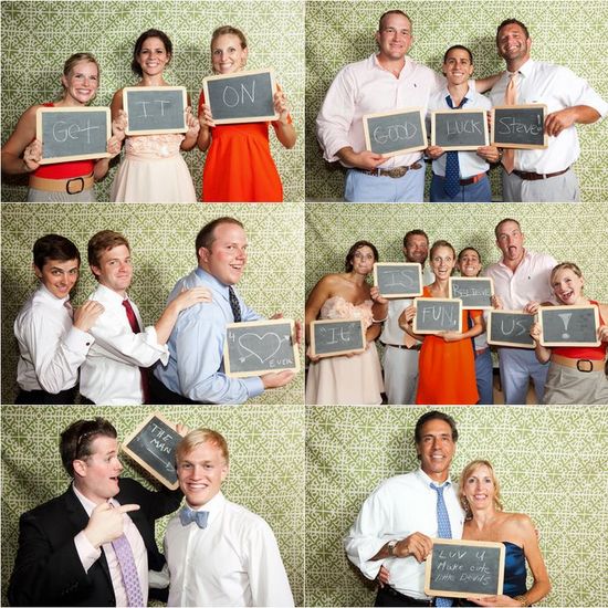 Ao invés de deixar o recado no papel, os convidados escrevem na lousa e tiram fotos segurando-a. Para os noivos, a coleção de fotos com mensagens é super especial.