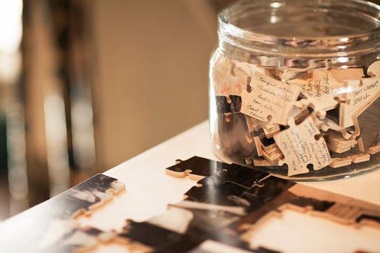 Para essa ideia, basta mandar fazer um quebra cabeças com uma foto do casal (em lojas especializadas em impressão e brindes) e deixar as peças disponíveis para os convidados assinarem no verso.
