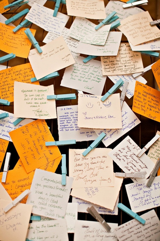 Parede, quadro, varal ou livro, você escolhe o fundo e seus convidados colam o recadinho lá.