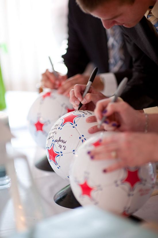 Já demos várias ideias de livros de assinaturas diferentes, mas nenhum delas envolvia uma bola de futebol. Uma ideia criativa para os convidados deixarem suas mensagens.